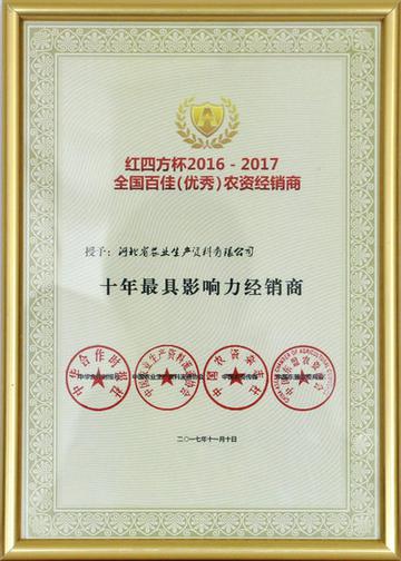 | 全國百佳(優(yōu)秀)經(jīng)銷商“十年最具影響力經(jīng)銷商” |