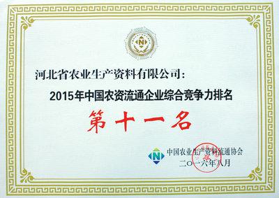 | 中國農(nóng)資流通企業(yè)綜合競爭力排名第11名 |