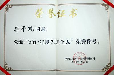 會(huì)議對(duì)中農(nóng)集團(tuán)2017年度4家先進(jìn)集體和20名先進(jìn)個(gè)人進(jìn)行了表彰。我公司黨委書(shū)記、總經(jīng)理李平現(xiàn)榮獲“2017年度先進(jìn)個(gè)人”稱(chēng)號(hào)。