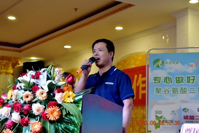 河北省農(nóng)資集團(tuán)副總經(jīng)理孫磊致閉幕辭,他感謝廣大種田大戶及經(jīng)銷商的信任與支持,河北省農(nóng)資集團(tuán)堅持以服務(wù)“三農(nóng)”為己任,與大家風(fēng)雨同舟,合作共贏,根植河北大地,服務(wù)華夏三農(nóng),河北農(nóng)資永遠(yuǎn)和您在一起。