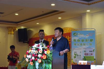 隆堯豐田農(nóng)資董事長賈國強(qiáng)結(jié)合2019年種田大戶的實(shí)際使用效果向與會人員介紹了產(chǎn)品特點(diǎn)、產(chǎn)品效果、市場前景等情況,希望大家一定要尊重科學(xué)和市場,選擇知名品牌產(chǎn)品,關(guān)注產(chǎn)品功能,關(guān)注聚谷氨酸肥料發(fā)展,關(guān)注高效增值肥料。