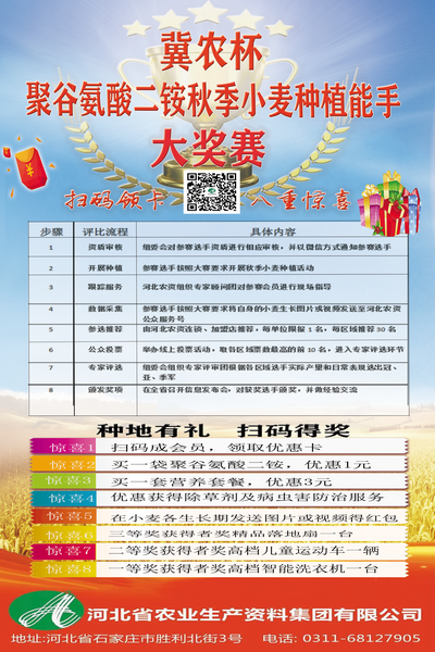 隆堯縣是河北省糧食生產(chǎn)核心區(qū)建設(shè)縣,是全國有名的方便面生產(chǎn)基地,全縣小麥種植面積60多萬畝,其中優(yōu)質(zhì)強(qiáng)筋麥面積超過30萬畝,隆堯小麥種植優(yōu)勢明顯。為使更多農(nóng)戶用上聚谷氨酸二銨,公司特舉辦“冀農(nóng)杯”聚谷氨酸二銨秋季小麥種植能手大賽,就是想以大賽的形式,讓廣大農(nóng)民用上好肥料,取得好收成,讓經(jīng)銷商得到好回報。