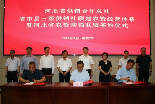 廊坊、唐山、保定、秦皇島、張家口、承德、定州七市三級(jí)供銷社聯(lián)建農(nóng)資經(jīng)營體系暨河北省農(nóng)資購銷聯(lián)盟簽約儀式在廊坊市舉行