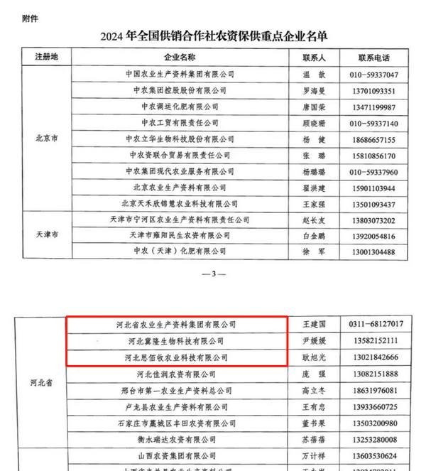 河北省農(nóng)資集團(tuán)入選2024年全國(guó)供銷(xiāo)合作社農(nóng)資保供重點(diǎn)企業(yè)名單