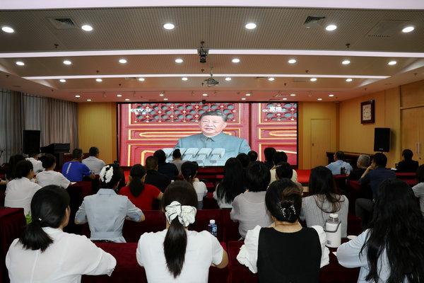 觀看現(xiàn)場氣氛莊重熱烈,全體人員全神貫注、心潮澎湃。屏幕上,受閱部隊官兵軍容嚴整、意氣風發(fā),新型武器裝備悉數亮相、威武雄壯,充分展示了新時代國防和軍隊建設的輝煌成就,展現(xiàn)了人民軍隊的強軍風采和中華民族走向偉大復興的鏗鏘步伐。英姿颯爽的隊伍、整齊劃一的步伐、鏗鏘有力的口號,無一不令人熱血澎湃,引發(fā)了現(xiàn)場強烈共鳴和陣陣掌聲。