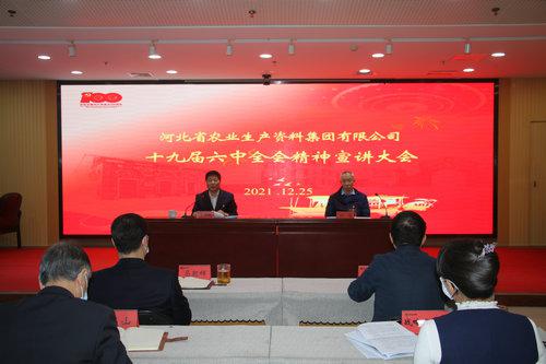 本網(wǎng)訊 2021年12月26日,河北省農(nóng)資集團公司在河北農(nóng)資大廈召開黨員干部大會,深入學習宣傳貫徹黨的十九屆六中全會精神,由省供銷社監(jiān)事會主任、集團公司黨委書記、董事長李平現(xiàn)對全會精神進行宣講,集團公司黨委副書記任海主持會議。集團公司班子成員、各單位負責人及全體黨員現(xiàn)場參會,集團公司其他人員通過釘釘視頻參會。